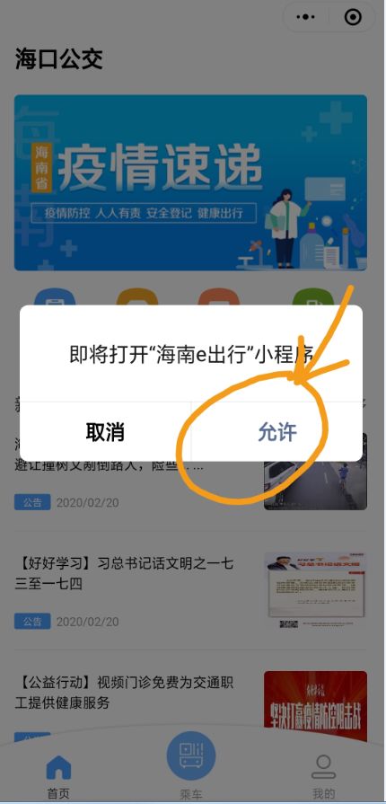 海口市援鄂及一线医护人员名单由海口市卫健委统计提供,援鄂及一线医务人员可通过微信搜索小程序“海口市公共交通集团有限公司”或”海南e出行”扫码乘车,点击立即开通后,根据线路选择相应票价进行扫码乘车,设备会根据所选择的票价播报语音提示,但不会扣除费用。